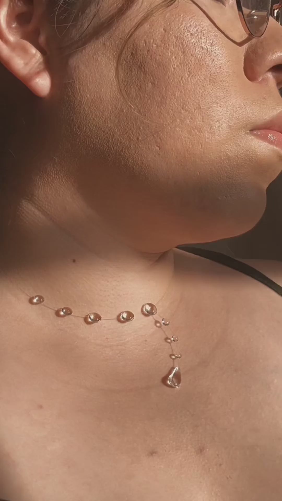 Handmade Dewline necklace is inspired by the purity of morning dew, this delicate choker captures the serene beauty of glistening raindrops resting on skin. Each clear droplet is handmade with UV resin and arranged along a nearly invisible filament line to create the illusion of water suspended in air. The teardrop pendant gently catches the light with every movement, offering a dreamy, ethereal glow. Finished with a durable stainless steel lobster clasp and adjustable chain extension for a comfortable fit. Perfect for nature lovers, brides, or anyone drawn to elegant minimalist designs that shimmer softly like rainfall.